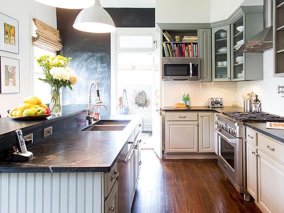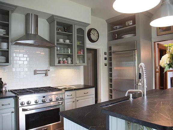 Luxurious home located on a large corner Lot. This charming 2-story offers contemporary updates, free flowing & functional floor plan with gleaming hardwood floors, crown molding & encased doorways. Entry opens into formal living & dining rooms with beautiful fireplace & original built-in china & book cases. Gourmet kitchen with soap stone countertops, subway tile backsplash, crown molded cabinets & high-end GE Monogram SS appliances inc. a 6-burner gas range with pot filler. The main floor also offers an enclosed front sun room, back mud/laundry room, 2 bedrooms, flex room & full bath. Upstairs be delighted by an additional secondary bedroom & dormer master suite with private bath & Jacuzzi tub. Finished bsmt. includes a ¾ bath, rec room & study. Enjoy privacy on the back brick patio & fenced yard, 2 car garage and 2 extra spaces of fenced parking!. Close to restaurants, LoHi, shopping, library and parks. 211 sqft for mud room and front porch are not inc. in the listed sqft.