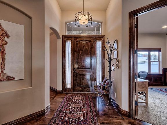 Located on a peaceful and private corner lot, this Keene Ranch custom home is designed for how you live. Tucked next to rolling hills to shield the home from wind while still providing stunning Front Range views. You will be impressed by the level of trim and finish.Take in the hand troweled walls, solid 8 doors, wood paneling and extensive hardwoods. Kitchen features include slab granite counters, travertine backsplash, 5 burner gas cooktop, Subzero refrigerator, functional island, double ovens with convection option and soft close drawers. Master suite with private deck and 5 piece master bath featuring 18 tile flooring, slab granite, jetted tub and custom tile work. Open lower level floor plan with wet bar allows for flexibility in entertaining. Lower level bedroom is ensuite. 1,000 sq ft workshop beneath garage is a dream for hobbyist or additional storage. Extensive outdoor living spaces to enjoy year round. Fully fenced with a pasture ready for your personally designed barn.