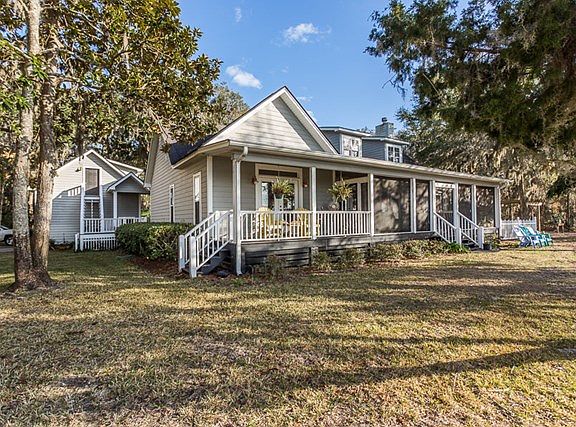 Custom coastal home located on deep water! This 3 bed 2.5 bath coastal cottage has wood floors, crown molding, granite counters, beautiful light fixtures, & much more! The kitchen has stainless steel appliances, tons of room for a large island, breakfast bar, gas stove, warming drawer, oven in the wall, & leads into the massive laundry/ mud room w/ exterior door. The master suite has wood floors w/ marsh views & wood floors in the bathroom, dual vanities, large closet, separate walk-in shower, private toilet, & huge jetted tub! The 2 guest beds share a jack-n-jill bathroom with separate shower&tub. The formal dining area is a great space to host events or you can enjoy company on your screened in back porch! There is a 2 car detached garage w/ breeze way & unfinished living space above!