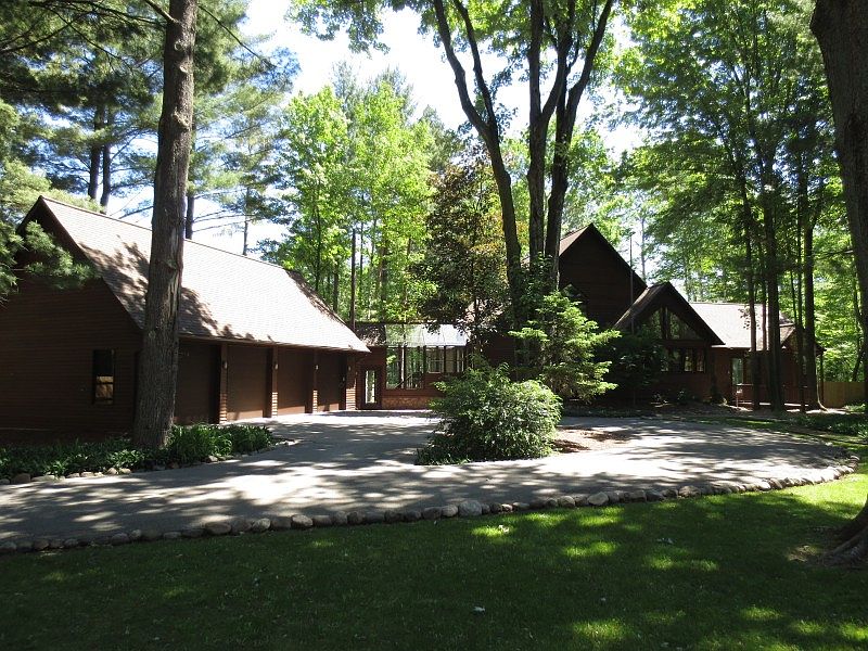 Amazing contemporary red cedar home on a large wooded lot in Saginaw Twp. This home has walls of windows and open spaces, a first floor master bedroom suite with huge walk in shower and a french door out to the screened in porch with hot tub. There is also a finished basement with a large rec room, sauna and wine cellar. There is an attached 4 car garage leading into the house through a greenhouse area. Newer low maintenance decking and the fence surrounding the whole yard.