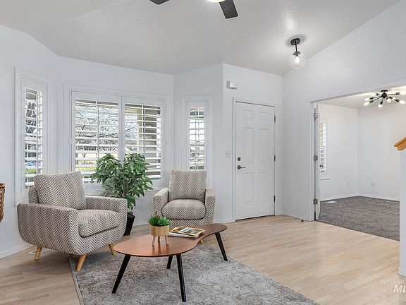 Experience effortless living in this meticulously maintained, former model home. Boasting 4 bedrooms, 2.5 baths, and a spacious 3-car garage, this residence offers both luxury and convenience. Enjoy a seamless open floor plan, a custom kitchen with elegant granite countertops, and a versatile downstairs bedroom/office with French doors and Plantation Shutters. New interior paint, carpet, LVP. Step outside to a professionally landscaped oasis, featuring an expansive covered concrete patio perfect for entertaining, all situated on over a third of an acre with a fully fenced backyard with potential for RV parking. Prime location near Meridian Village, with its vibrant array of restaurants and shopping, ensures a lifestyle of ease. This immaculate, move-in-ready gem awaits!
