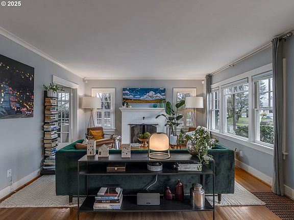 This stately Dutch Colonial home on a private corner lot has been updated for modern living yet maintains its period charm. Enjoy the light-filled, open-concept main floor that flows easily from the living, dining, and kitchen spaces. The remodeled kitchen includes an eating bar, a Wolf gas range, wine storage, and a built-in microwave. It has also been opened to the dining room, allowing the ideal layout for entertaining. The 2,973 square foot floor plan includes a rare primary suite, two additional bedrooms on the same level as the primary, a sunroom/office, and a lower level complete with a family room, bonus/flex space, and extra storage. Above the two-car garage is a permitted ADU complete with a full bathroom and kitchenette, excellent for a passive-income investment opportunity, au pair quarters, or a guest space. The private courtyard patio is perfect for upcoming summer dinners or take to the expansive and fenced-in side yard to enjoy the neighborhood. Enjoy being in a quiet residential neighborhood, yet only blocks from Alberta and Fremont Street, with award-winning restaurants, cafes, and shopping. Coveted Wilshire Park has a playground and picnic areas and is only one block away, plus Alameda Elementary School is a short distance away - perfect for busy mornings. Do not miss this turn-key Alameda home! [Home Energy Score = 2. HES Report at https://rpt.greenbuildingregistry.com/hes/OR10236780]