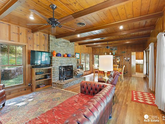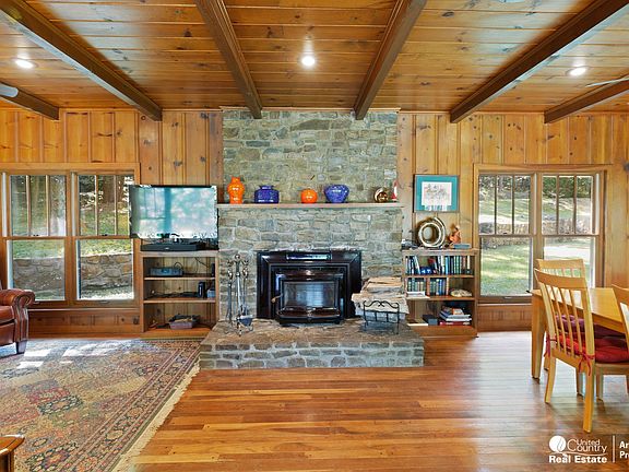 Serenity begins the moment you open your car door to the sound of the waterfall that runs directly in front of this home. You pass through the stone column entry and into a home graced with exquisite stonework nestled in harmony with the surrounding mountains and whispering trees. Fireplace with Hearthstone insert makes you long for winter. Enjoy the views through the Pella Windows. Detached deck overlooks the creek, inviting you outside for morning coffee. Come see this lovely home in a peaceful setting.