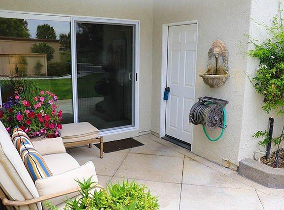 GORGEOUS home located in the much desired gates 9 and 10 of this premium 55+ community of Laguna Woods. Open flowing floor plan. No expense has been spared in remodeling; everything is in pristine condition with top of the line amenities. Dramatic granite slab counter tops with maple cabinetry in kitchen and stainless steel appliances. Beautiful hardwood laminate flooring through living, dining, kitchen and hall with warm neutral tones throughout. Carpets in bedrooms. Third bedroom has been converted to a den. Expanded master suite boasts a large walk-in closet and access to the front patio through sliding glass doors. Both bathrooms have also been completely remodeled. Wood-burning fireplace between living & dining room is surrounded by granite hearth--A MUST SEE! Soft water system and COPPER RE-PIPE OF ENTIRE HOUSE. All new vinyl windows and sliders. Recess lighting throughout. GORGEOUS MAHOGANY FRONT DOOR!! Front courtyard has been opened to allow for expansive front lawn & tranquil wall fountains. Partially covered rear patio provides for filtered light throughout the dining and kitchen; slate tile blankets the patio floor. This is a GORGEOUS home for entertaining, with lots of outdoor space; a home that is sure to please the most discerning buyer!