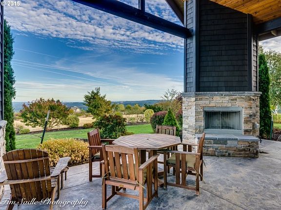 Exquisite single-owner custom estate by Shelburne Homes w/sweeping views of five mtns & vineyard potential. Street of Dreams winning "Alderhouse" plan features high-end finishes incl hickory & cherry hardwoods, heated slate flrs, stone fireplace, gourmet kitchen, luxurious master suite, sauna & more as noted on attached amenities list. Covered patio w/stone fireplace, studio, shop, 3300 sq/ft potential tasting room and more.