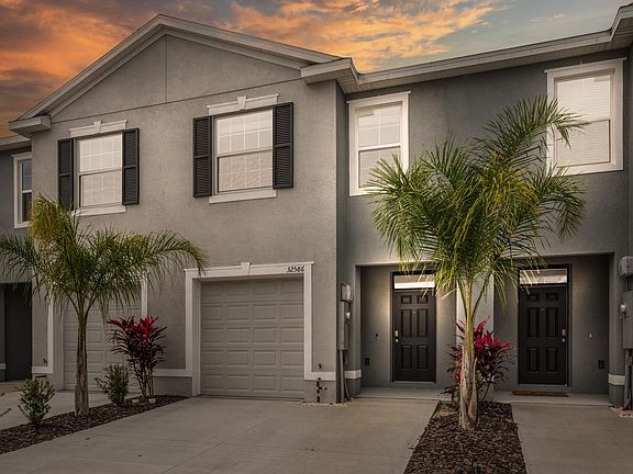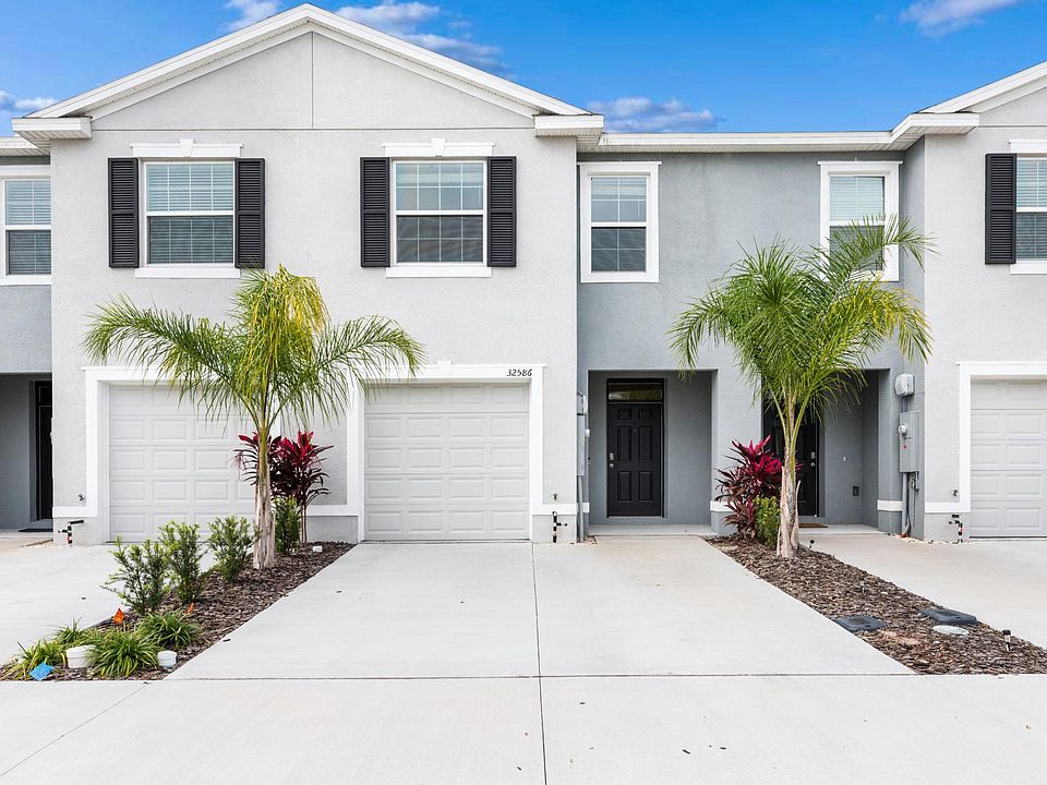 Newly upgraded Townhome in GATED section of Epperson available now! 3 bedrooms, 2.5 bath, attached single car garage with a 2 car driveway. Epperson amenity access included for your whole family along with high speed internet included! This block on block constructed townhome minimizes noise transfer from the outside while having a well designed layout. The first floor is an open concept with a designated dining area, kitchen with island bar, powder bath, under stair storage and family room that features a 3-slider door that opens to a covered lanai allowing in plenty of natural light. The second floor holds the primary bedroom with 2 closets and a view that overlooks the rear pond and conservation with a west view for incredible evening sunsets. The second and third bedrooms are thoughtfully designed for an extra play space or work from home office. All features have been upgraded throughout home with 9' 4" ceilings on the first floor, 8' 8" on the second floor, granite throughout kitchen and all bathrooms, tile walls in showers, a large single bowl sink in kitchen, stainless appliances, and washer/ dryer. Screened in lanai to enjoy the beautiful sunsets. Other recent upgrades include marble backsplash in the kitchen, a trendy shiplap wall in the living room which includes a wall mount for a TV, and a trim decorative wall in the primary bedroom. This home is also a Connected Home that comes included with smart features. Nearby schools such as InPrep Charter offers grades K-8 that follows the WISH academic program. Kirkland Ranch Academy of Innovation offers grades 9-12. Nearby entertainment includes The Grove, Wiregrass Dining & Shopping, Costco, and is close to I-75. Epperson is a highly sought after Connected City featuring a 7.5 acre Crystal Lagoon offering UltraFi 2.0 with 500/500 mbps internet speed. Not only will your connectivity be fast, you'll be immersed in a Lifestyle of Fun that includes paddleboarding, kayaking, an obstacle course, swim up bar, restaurant, waterslide and endless activities for all! Pets Allowed! First Month and Security Deposit due at signing with a non-refundable pet deposit of $400. One time $50 application fee to register with the HOA for use of the Community Amenities/Lagoon. Lawn Care included, 500/500 internet/cable included and all monthly fees to enjoy the Lagoon are included. Private owners so you don't have to deal with a leasing company and have a fast response time! Home was built with the dark cabinets and white/black granite you see in the photos. Other photos show furniture placement taken from the model home.