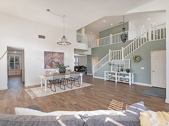 You will fall in love with this Sage Meadows home @ Madison County. The home features 3 bedrooms and a loft which could easily be turned into a fourth bedroom or office. This fabulous home has many upgrades to include; new wood like tile floors, new bathroom vanities and fixtures, lighting, paint, mirrors, remodeled kitchen custom cabinets, oversized sit around quartz stone center island, tiled backsplash, butlers pantry, beautiful new stacked stone floor to ceiling fireplace, soaring high ceilings makes this home open and spacious. There is a lovely pool which has a sitting area inside the pool along with a spa for relaxing. You can appreciate the roof top solar panels with help keep the cost of electricity down. Come fall in love with this home.