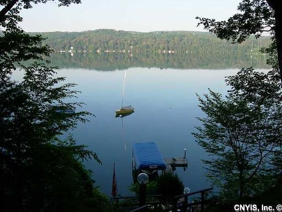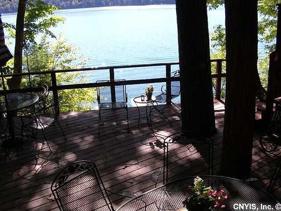 Adorable Contemporary Cottage features 120 feet on Skaneateles Lake. All furnishings can stay. Property is ready to enjoy. Large windows bring lake living to you. Large living room to for casual living. Compact kitchen is just large enough for summer cooking. Nautical hardware used as cabinet pulls help create a playful mood for even the not so serious boater. Large bedroom on first floor convenient to the full bath. Two bedrooms on second enjoy a Jack and Jill arrangement. Wait till you see this deck--ready to enjoy summer--Hurry don't let this one get away.