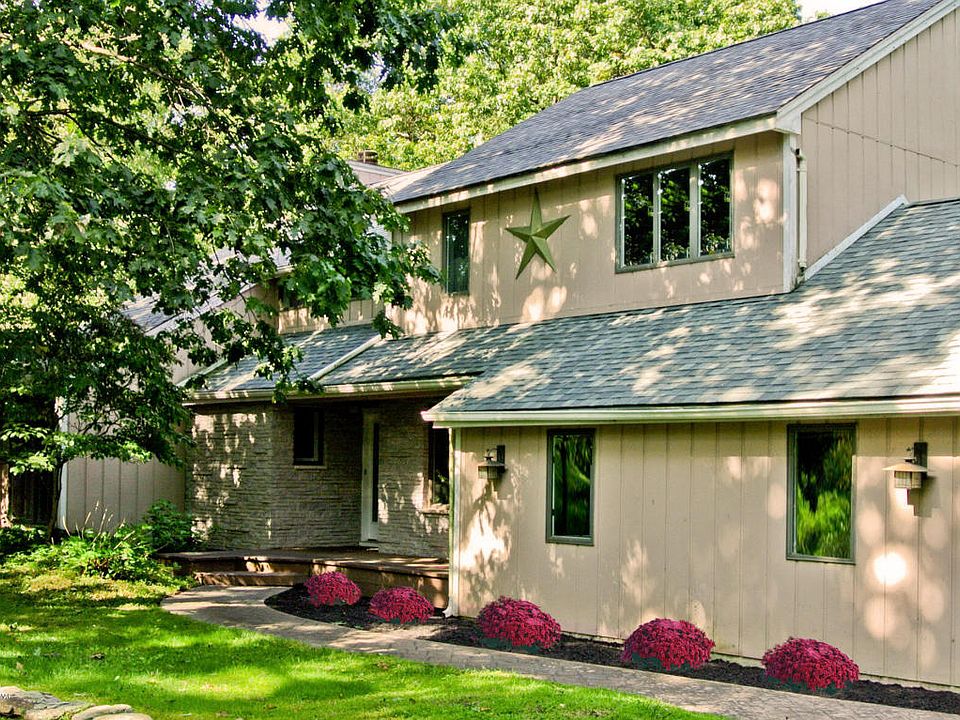 Captivating Contemporary Designed With Lots Of Open Space On A Park Like Setting Offers Wood Floors, Crown Molding, Sunken Living Room With Wall Of Windows, Dining Room With Pocket Doors. Open Concept Family Room/ Kitchen Makes A Great Combination For Entertaining. Stone Fireplace, Panoramic Windows, French Doors Offer Access To Deck And Patio. Spacious Kitchen With Cherry Cabinets, Ss Appliances, Granite Counter Tops, Island, Pantry. 1st Floor Laundry/Mud Room. All Bedrooms On 2nd Floor With Bamboo Flooring & Crown Molding. Large Master Suite With Wic, Master Bath Suite, Featuring Heated Floor, Soaking Tub, Dual Sinks & Shower W/ Glass Door. 2-Car Garage, Paved Driveway, Shed, All On 1 Private Acre