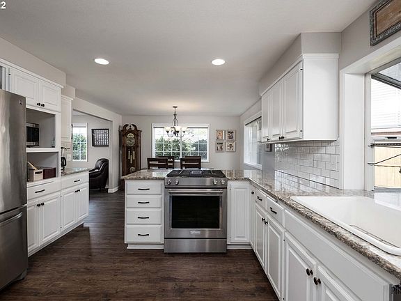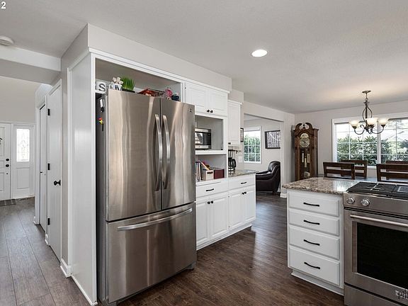 Beautiful home with updates throughout. Queens East features a gas fireplace in the living room, engineered hardwoods, updated kitchen with quartz counters and stainless steel appliances, large family room, a three-car garage and RV parking. Primary bedroom has a walk-in closet, updated bathroom with heated tile floors and a skylight. Just a short drive from shops and Oakway center, but situated in a quiet, very walkable neighborhood. Make an appointment today this home will not last long!