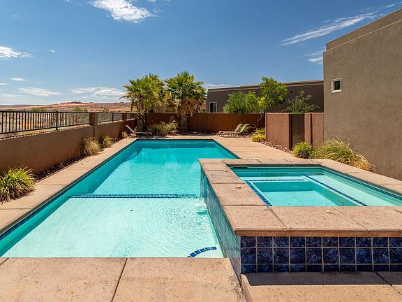 4000+ SQUARE FEET, DETACHED CASITA, 3 CAR GARAGE, POOL THAT ACTUALLY SEES THE SUN. Lay back in your floaty and enjoy red desert views all the way to Zion. Rare, COOL, full basement with 9' ceilings and tons of storage. Back yard features a covered patio, private pool, hot tub, fire-pit, BBQ surrounded by mature palms. Solid wood doors and trim, second laundry. Don't miss this one!