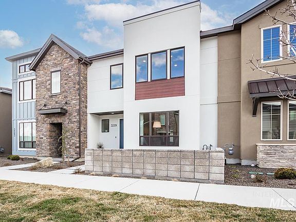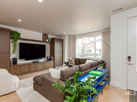 The Barclay at The BLVD – Innovative urban townhomes in the heart of Harris Ranch. Experience this stylish, mid-century modern design, infused with natural light throughout the expansive picture windows. Revel in the seamless blend of form and function with built-in cabinetry adorning the living room and a versatile technology center featuring a striking block stone wall and a modern barn door. Indulge your culinary desires in the exquisite kitchen with boasting quartz countertops, a full tile backsplash, a top-of-the-line sleek stainless range hood, a 6-burner gas range, and a built-in entertainment bar. Your retreat awaits in the spacious master bedroom, accompanied by a well appointed master bath featuring quartz counters, tiled floors, a luxurious full-tile shower with a built-in bench, and a euro glass door. Step outside and choose your adventure within a few moments you'll have access to Boise Greenbelt, Barber Park, The Boise River, and the foothill trails.close proximity to Downtown Boise and Micron.