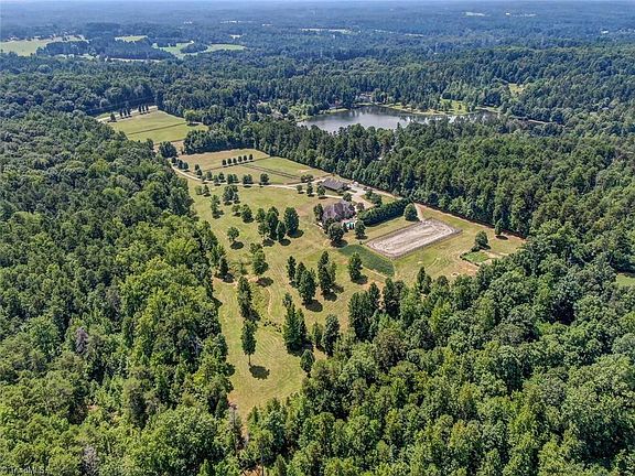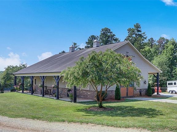 Follow the 4 board fenced pastures along a tree lined drive to Liberty Hill Farm. An alluring blend of a country retreat and an equestrian estate that checks all the boxes! Orchard, Chicken Coop, Rocking Chair Porch, Professional Gardens, Backyard Oasis, Salt Water Pool surrounded by Gardens, large Patio with Firepit, Kennel, Stream, overlooking sweeping pastures. Recently refreshed custom residence features hewn beams, stone fireplace, studio/sunroom, chef's kitchen, abundant moldings, plantation shutters, flexible floor plan, and immaculate in condition. The barn has a concrete center aisle, 6 -12x12 tongue & groove stalls, rubber mats, tack room with laundry, wash stall, and fly misting system. 275+bales hay loft, separate septic system. The "piece de resistance" - 90x220 fenced arena with shredded rubber footing! This estate provides easy access to both the Triad and Triangle. Located minutes to major arteries, shopping, restaurants, boating and a homemade ice cream shop!
