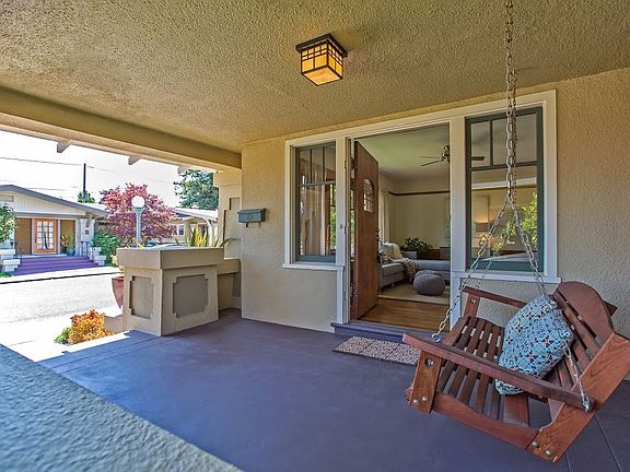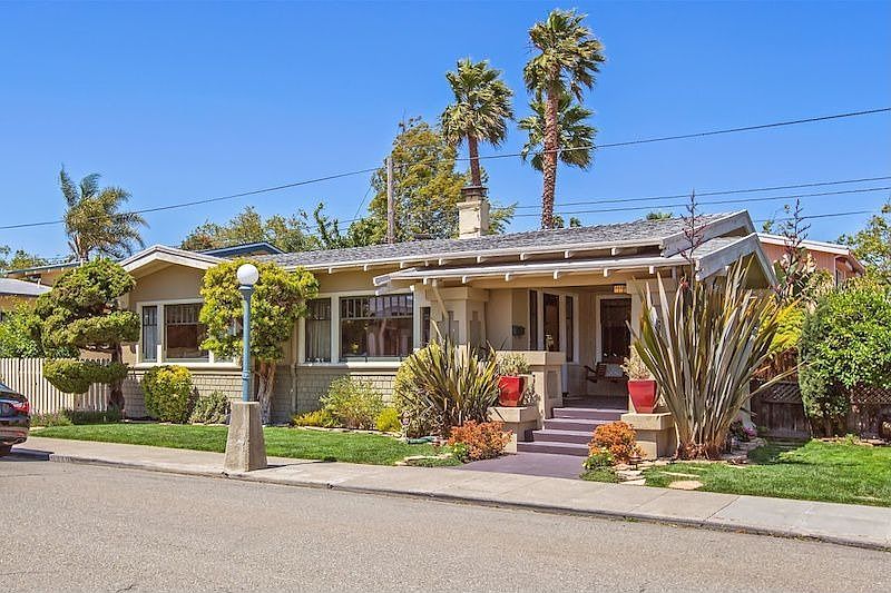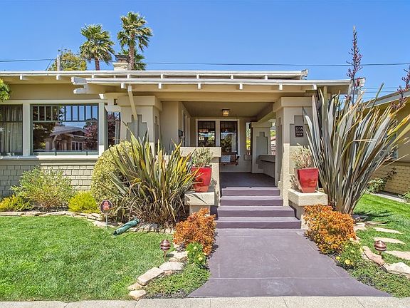 Gorgeous light-filled East End Craftsman Bungalow located right in the middle of Alameda's famed "Bungalow Row." This architecturally rich home is a true showpiece of the Craftsman Bungalow era. The arts & crafts style address plaque greets you as you walk up on to the oversized covered front porch, complete with a cozy porch swing perfect for relaxing on a lovely summer day. The large front door with a leaded glass window opens into the living room, which features gumwood wainscoting and built-in bookshelves with leaded glass doors surrounding the gas-burning fireplace. Gumwood wainscoting, plate rails, picture rails and built-ins all grace the dining room with views out to the Meyer lemon tree, lawn, fountain and raised vegetable gardens in the oversized side yard. The updated kitchen with stainless steel appliances, shaker style cabinetry and warm colored granite countertops also has a built-in breakfast nook with cushioned seating and a perfect view out to the backyard patio area where the pond, hammock and outdoor fireplace await. The large picture windows in the living room, dining room and front bedroom have all been replaced with dual pane wood windows with divided light panes, a true reflection of the Craftsman style. In fact, many of the homes on this block have upgraded their windows to architecturally rich designs as well, adding to the overall appeal of the neighborhood. The newly refinished hardwood floors run throughout the home, with the exception of the bathroom and kitchen, both of which have warm, rich tile flooring. The bedrooms both have large windows allowing the sunlight to fill the rooms and also allowing for a cool breeze when needed. Both bedrooms have closet organizing systems in addition to the large linen closet located in the hallway. The updated bathroom also has a large linen closet with finishes similar to the kitchen, adding to the seamless design and visual flow throughout the spaces of the home. Visit www.3259Sterling.com for more photos and info.