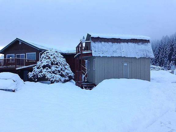 This 2 Bedroom home includes the house, cabin-2 Story 360 sq.ft. finished & furnished with some appliances and beds etc., greenhouse, freezer shed 4 freezers, & 5.5 acres of salmon creek side property with 80 plus boat or rv storage spots business that stay full during the summer & 30% in Winter. Amazing views & established turnkey business makes this valuable. Parking spots for all the toys. Wonderful deck, gorgeous landscaping. Pet friendly flooring, Tongue and Groove Ceilings & More! Thriving business with revenue of $40,000/yr.