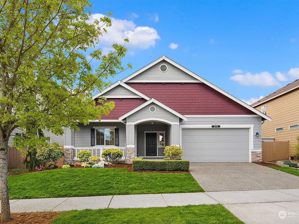 Rare, modern, rambler! This meticulously maintained single-owner residence boasts southern exposure throughout its spacious single-story layout. This home was built in 2012 and refreshed for 2024. Refresh includes new flooring, paint, quartz countertops, lighting, and hardware. With 14' vaulted ceilings and an open floor plan, the house feels more extensive than its footprint suggests. The natural light in the yard and living spaces will recharge your batteries and is perfect for the backyard warrior or secret gardener. Stay cool here this summer with ice-cold A/C. A short 5-minute walk to Martha Lake off-leash dog park and McCollum Park Athletic Field! Something for everyone. Welcome home!