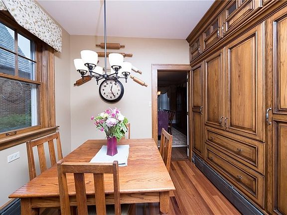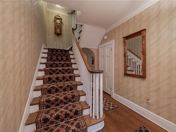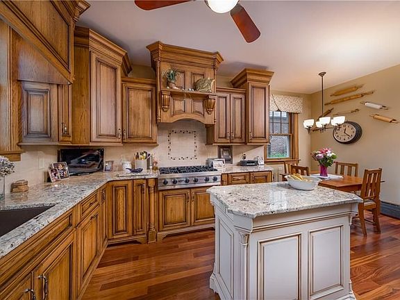 Beautiful brick colonial in Ridgewood. Pristine condition, and kept to perfection. This property features a foyer entry, living room and formal dining room, and first floor family room/gas fireplace. The kitchen is amazing with custom hickory cabinets and granite counter tops, granite double sinks, Viking 6 burner cook top/double ovens, teak wooden floor, and walk in pantry. At the rear of the home is an enclosed porch with insulated walls and ceilings, raised and insulated floor under slate flooring, and electric auxiliary heat. Second floor offers master bedroom/ private bath, and three other bedrooms and full bathroom. Sun room off the landing between first and second floor used as sewing/ craft room. Third floor, which is finished, is another bedroom area with full bath, storage area/ walk-in cedar closet, and walk-in clothes closet. Basement features a TV/play room finished area, half bath, utility/laundry room, exercise/misc. room, and work room with storage. A detached four car garage; front garage with attic area for storage or work shop; wired for 220 electric and 220 compressor, and outlet for electric welder. The rear garage is wired for 220 electric heat, if desired. Shed w/20 amp breaker box. Special features: newer boiler, newer gas water heater and water softener, slate roof and new valleys installed, back yard fenced in/electric gate across driveway, outside security lighting, 200 amp electric service with meter that can be read from the street.