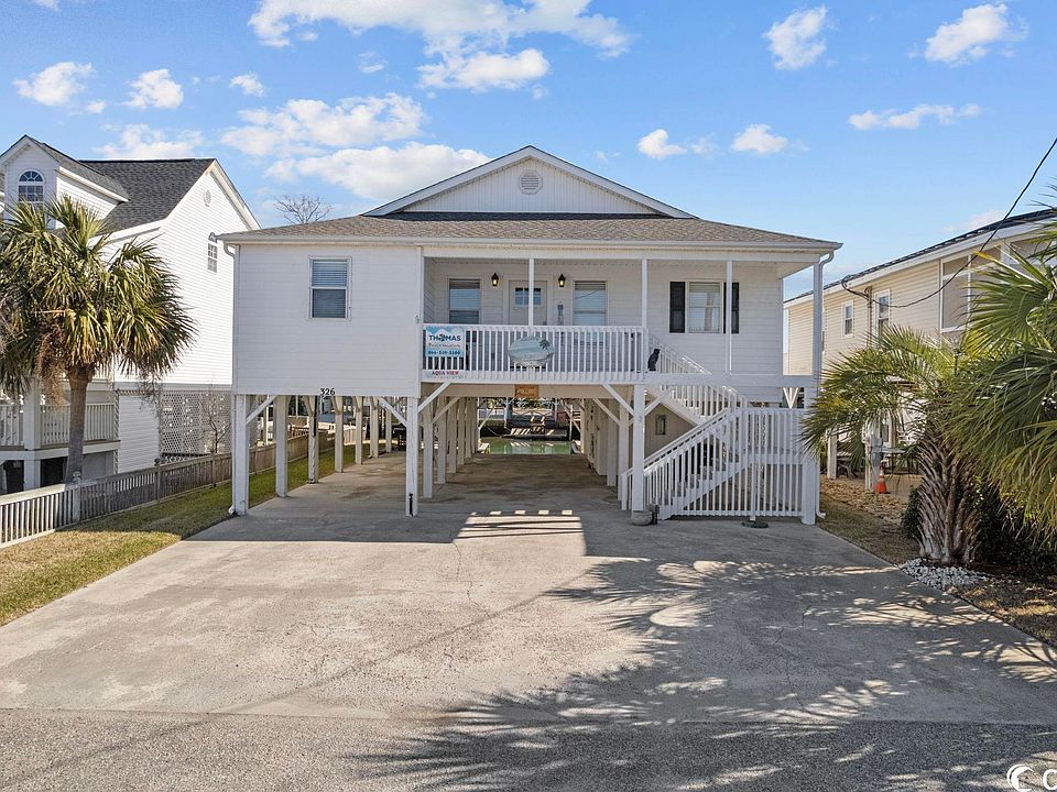 Looking for a dream vacation property? Well, here it is! 326 54th Ave N is located in the "Creek House" section of Cherry Grove. The home features 5 bedrooms, 4 bathrooms, front and back decks, private boat dock and private boat ramp! Just a short boat ride out to the main channel to connect to the Atlantic Ocean. The living room has a beautiful built-in Entertainment center, wainscoting walls, laminate floors, and beautiful furnishings throughout. The dining room is large and perfect for family gatherings. There are two decks on the house. The first deck hugs the front of the home, and a second deck is across the back of the house that opens to a spacious sunroom overlooking the channel. This makes for the perfect place to watch the gorgeous sunsets every evening. The boat ramp is an extra plus and also has an 8 x 12 floating dock with a 10 x 17 deck. The underneath storage area is the perfect storage place for beach bikes, surf boards, kayaks, golf clubs or beach equipment. An outdoor shower is available as well to rise off after a day at the beach. Roof is Brand New (2023), HVAC 2021, 2-Water heaters-2019 and 2020. Home has recently been pressured washed, stairs, decks and balusters have been painted. It also offers long and short-term rentals and is conveniently located to shopping, restaurants, attractions and golf. So, whether you are searching for your vacation home, investment, or primary residence, this one has it all.