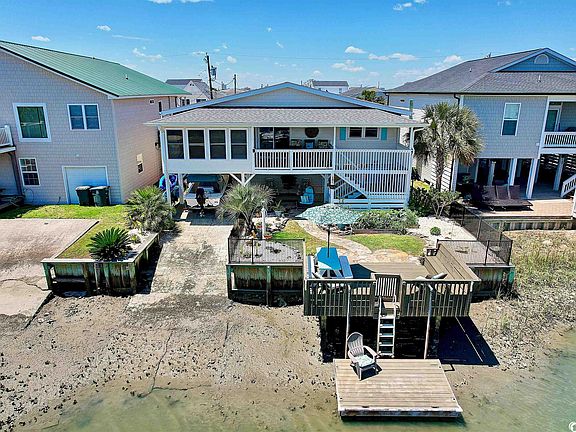 A piece of paradise! This raised beach home is located directly on the channel off a quiet street in the Cherry Grove section of North Myrtle Beach, SC. Completely updated throughout with new flooring, paint, granite countertops, water heater, roof, vinyl siding, sunroom, windows and so much more! Enjoy the luxury of a private boat ramp, stationary dock, and floating dock in your own backyard; also only three blocks to the sandy beach. The inside features a traditional beach house layout with an open floor concept. Relax on the newly added front porch and enter the home through the new french door. Opening into the living room with a ceiling fan. Next is the dining area attached to the kitchen. The kitchen features stainless steel appliances, island with cooktop and bar seating, granite countertops. Through the sliding glass door is a new sunroom and back porch that overlooks the beautiful natural habitat of the deep water channel marsh. Back inside there are four bedrooms all similarly equal in size with ceiling fans. The new bathrooms are between the bedrooms with a tub / shower combination in one and the other features a standing shower. The laundry room was relocated upstairs making it very convenient, the washer + dryer convey. Downstairs are two separate storage areas, a hot + cool outdoor shower and plenty of parking space. The home features lavish landscaping with palm trees, stones, sod, plants and lights. The backyard features new aluminum fencing and a growing garden. Owners have completed many upgrades throughout the years making this a turn key property; ask for a list of improvements & conveyance. This beautiful home is located in the Cherry Grove section of North Myrtle Beach, SC. Trash removal is included in city services. Short Term + Long Term Rentals are allowed and welcomed. It is located near the world famous Cherry Grove Pier that was built in the early 1950s and has since been updated to feature a restaurant and excellent fishing day & night. Cherry Grove Beach is the northernmost beach in the state of South Carolina with beautiful sandy beaches that are easily accessible and stunning scenic views from the point. Shopping, Dining, and Entertainment, is only 5 minutes away with all the best attractions, being in North Myrtle Beach, SC. This property would be perfect for a second home, primary residence or investment property, be sure to schedule your showing today!