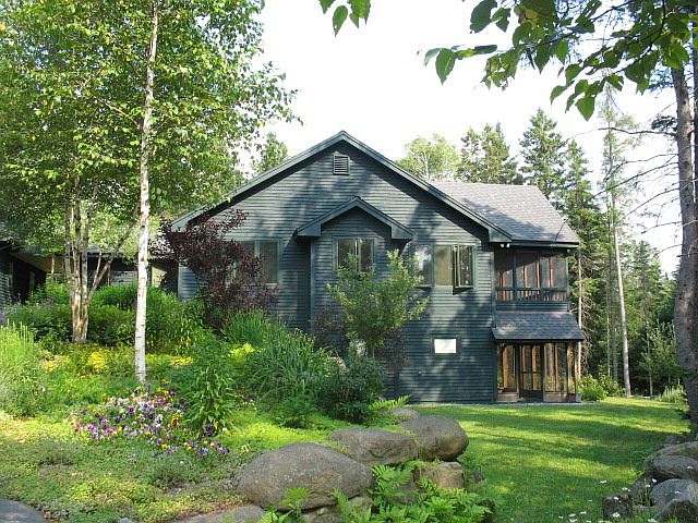 Picture book perfect- describes this home, with all the extras; Tulikivi soapstone stove, wood floors, central air, sauna, granite counter top, basement workshop, solar panels, back up generator, 3 screened porches and 2 open porches, surrounded by rock wall gardens in private setting with 30 ft. on Adirondack Lake