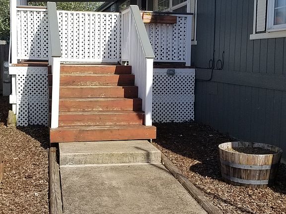 Beautifully remodeled and updated! Move in ready, 4 bedroom 2 bath, with custom countertops and built in closet organizer; nice pantry. Spacious with open floor plan. Good sized bedrooms. Energy efficient windows. Lovely 400 sq ft covered porch. 10x18 storage shed with electric. Carport. Fridge, stove, microwave are included. Space rent is $465/month, Not a 55 and older park.