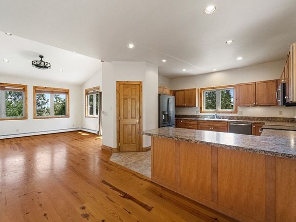 Nice Mountain Views but surrounded by trees for wonderful privacy, this 3 bedroom, 3 bath in-town home has the feel of being out of town! Perfect entertaining abounds with the large great room, peaceful elevated deck, plenty of kitchen cabinets and countertops, and even a nice backyard with a deck. Each bedroom has it's own bath, a downstairs living area, laundry/utility rooms, and no HOA are just icing on the cake! The attached oversized garage will hold even the largest pickup truck and all your toys. Close to everything Fairplay has to offer including many businesses, restaurants, schools, recreation center, fairgrounds, county offices, and the Fairplay Beach. Roads are maintained by the Town for easier access. About 30 minutes to Breckenridge for World-Class Skiing and Jack Nicklaus-designed golfing, several reservoirs, and the great Arkansas River for rafting, kayaking, fishing and more!