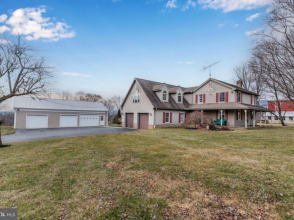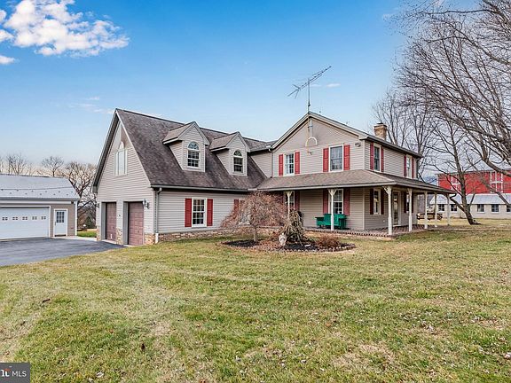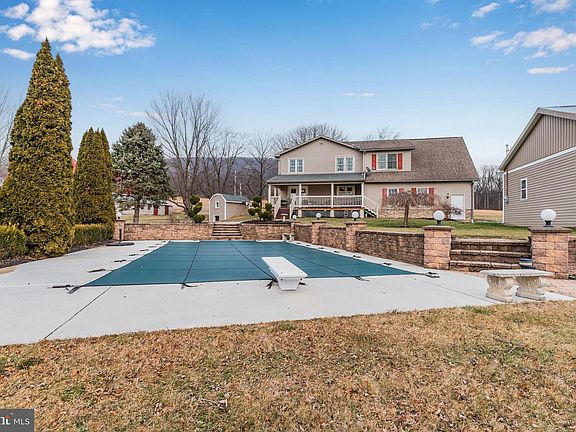 Here is your chance to leave that neighborhood HOA for some good ole Cumberland County country living! Beautifully restored farmhouse on 6.81 acres spanning two parcels. Located just 15 minutes from Carlisle, this property is a picturesque lifestyle farm with modern amenities. Exterior features include a 1,344 SF pole barn with three bays and a heated workshop, pristine bank barn (37x50 plus 10x60 lean-to), wagon shed (20x42), woodshed, fenced pasture (+/- 0.30 acre), rear covered composite deck with ceilings fans overlooking the inground pool, a wraparound front porch with swing, five-acre field, and unmatched mountain views. Full custom kitchen remodel circa 2018 with tiled floors and backsplash, granite countertops, huge island, panel ready subzero refrigerator and dishwasher, Wolf induction oven, and built-in microwave drawer. The tasteful farmhouse renovation maintained rustic roots featuring a kitchen woodstove with brick surround, exposed beams, and reclaimed wood in the first floor bathroom. Recessed lighting throughout main level, some hardwood floors, and an oversized side-entry attached garage. The upstairs features four bedrooms and two full bathrooms including the primary suite with vaulted ceilings and walk-in closet. A separate stairwell off the kitchen leads you to a bonus room and fifth bedroom above the garage. Central air conditioning throughout. The furnace can burn oil, coal or wood. Truly an exceptional property you must see!