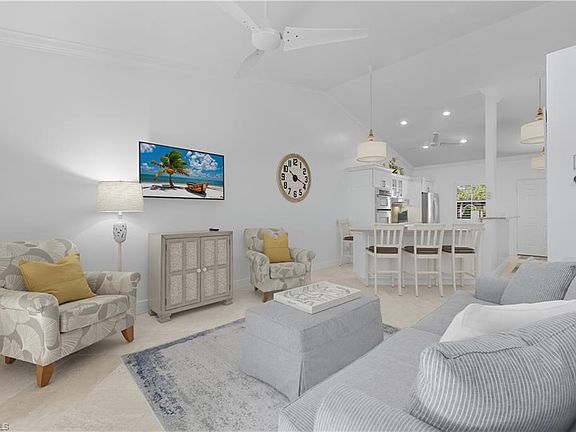 Vacation rental!! Condo in Bradstrom Village in the heart of Lely resort community an immaculately maintained, tastefully furnished 2 bedroom, 2 bath second-floor condo in a quiet community, just 6 miles from downtown Naples and the white sand beaches of Southwest Florida. Fully furnished and equipped, condo features vaulted ceilings, a beautifully updated kitchen with granite countertops, double wall oven , stainless steel appliances, and a large breakfast bar, plus a spacious primary suite with dual vanities, a walk-in shower, and a large walk-in closet. The unit also offers a convenient laundry room with plenty of storage, and a screened-in lanai just off the family room, perfect for relaxing while overlooking the beautifully landscaped grounds. Covered carport for parking, community pool access are included with your rent. No pets per HOA
