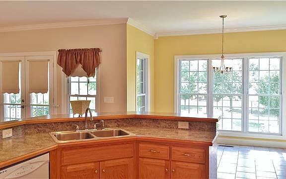 Great Price! 9' ceilings & wall of windows, hdwd & tile w/eat in kit.& stone gas FP. Wainscotted DR, dual therm. bonus, fenced, garden space, covered porch. View of rolling hills & close to lake! Beautiful, vacant, & move-in ready! Motivated!!