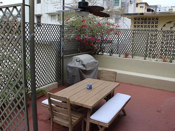 Executive Rental! Centrally Location with easy access to Condado, OSJ and banking district. Stylishly renovated Spanish Villa with modern amenities. Gourmet Kitchen with gas stove and reverse osmosis filtration. New SS Appliances. Master bedroom with en-suite bath and walk-in closet. Kitchen opens up to cute garden with lemon tree and a large up-stairs terrace perfect for out-door entertaining and BBQ. Available furnished or unfurnished, depending on lease and terms. Lease includes water and 24/7 security system.