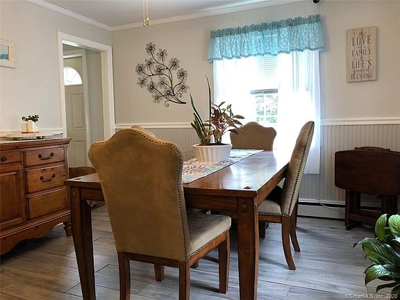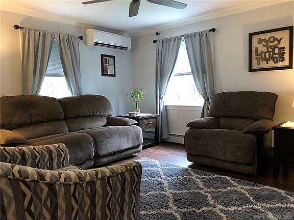 Lots of upgrades done to this 3 bedroom cape. Enjoy the beautiful canopied rear deck and landscaped yard while sipping that morning coffee. Soak in the hot tub on those chilly nights or sit around the fire pit. Stockade privacy fence surrounds the back yard. The shed has electricity and is great for all of your out door storage. Inside the kitchen has been remodeled with granite counter tops, Samsung Stainless appliances including a propane range with convection oven, Refrigerator, Dishwasher and over range Microwave. The back splash is a delightful subway tile and the floor is tiled. This home is air conditioned by 2 ductless mini split units that were installed in 2020. The 2 full baths have been remodeled and there are hardwood floors throughout this home. The roof was replaced in 2020 and so was the oil tank. There is plenty of room for storage in the basement. The one car garage is attached to the house by a knotty pine breezeway. Don't hesitate to call for an appointment today.