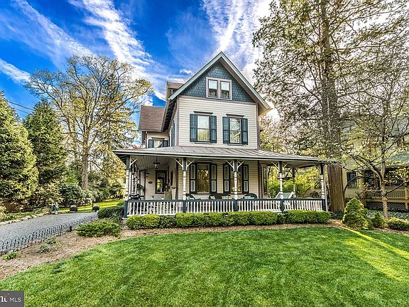 Stunning Victorian home in the heart of beautiful Moorestown! Enter off the amazing wrap-around front porch into the foyer with original wood flooring, soaring 9 foot ceilings and gorgeous moldings throughout, The formal living room offers hardwood floors, a beautiful bay window and built-in bookshelves. The spacious kitchen is bright and light with original cabinetry, an island, double sink, pantry and a breakfast room overlooking the private and serene backyard. On the 2nd level, the master bedroom has hardwood floors and a cute private outdoor terrace. The impressive master bath is full of natural light and has been renovated beautifully with a claw foot tub/shower. There are two additional bedrooms on the second floor with a renovated hallway bath. The third floor features an additional two bedrooms, one with a huge walk in closet that can be made into a sitting room or bath to fit your needs. The backyard is private and quiet! The wood deck and stone patio is perfect for entertaining. There is an irrigation system, an alarm system, central air, and so much more. Walk to town in this charming and incredible home.