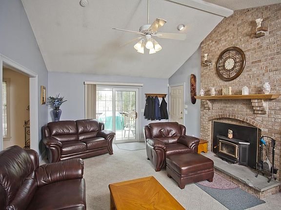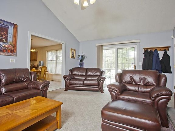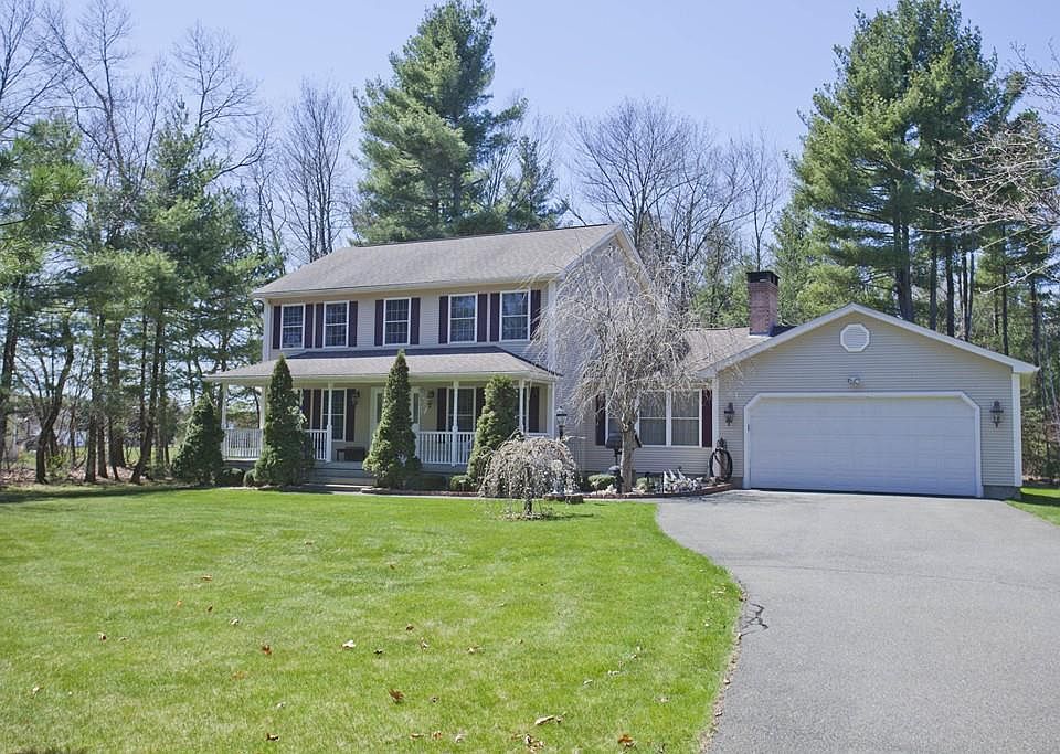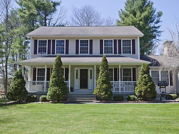 Private beautiful 3 bedroom Colonial has a large warm & inviting kitchen with tile floors, ample cabinet & counter space, breakfast bar and plenty of room for a larger dining table; perfect for entertaining. Solid HARDWOOD floors in living room & formal dining room. Family room has cathedral ceilings, recessed lighting & wood stove insert for cozy nights. Convenient access to spacious backyard from the family room with large three tiered deck. The large Master bedroom with on-suite bath and a walk-in closet has a built in desk area. The second bedroom and third bedroom have large closets. The laundry room on the first floor has a half bath. Central forced air oil heat furnace & forced air ac. Enjoy your warm summer days lounging on the private porch in the front or from the deck overlooking the beautiful spacious backyard. Large 2 car garage with extra room for work area. Large shed in the backyard has electricity for lighting, power tools; plenty of room yard equipment.