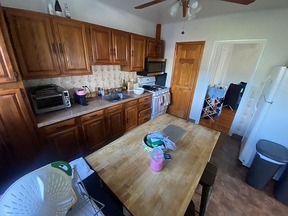 Lovely Top-Floor 3 Bed / 1 Bath Apartment Available Sept 1st Location & Layout Situated in a multi-family house, offering a bright and airy top-floor setting Private back deck plus access to a shared backyard Interior Features Hardwood floors throughout High ceilings enhance the spacious feel Gas heating for efficient warmth Laundry in the basement for added convenience Bedrooms & Storage Three large bedrooms with ample closet space Two additional large storage closets Kitchen & Dining Eat-in kitchen with plenty of cabinet storage Availability Available for move in on September 1st
