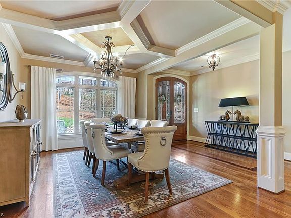 Gorgeous Belews Lake Front Estate offers stunning views throughout! As you walk in u see and hear the frnt waterfall. Home has hard wds throughout with coffered ceilings. Amazing kit w/granite, center isl, 2 pantries, built-in b'fast table; ss appl incl 6-burner gas cooktop, DW, & built-in double conv ovens w/dual MW. ML MST STE w/updated BA. BSMT w/2 BRs, kitchenette, den, game rm & 2nd laundry rm. The Back yard is perfect for entertaining in the private oasis with swimming pond, jacuzzi, and fireplace!
