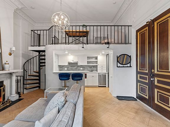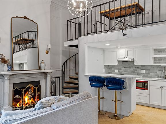 Step into this stunning parlor-level duplex that blends historic charm with modern updates. From the moment you walk in, you’ll notice the character — 14-foot ceilings, intricate crown molding, a show-stopping ceiling medallion, and original parquet floors that give the place that classic Boston feel. The open layout includes a bright, lofted space just above the main living area — perfect for a home office, guest space, or creative nook. The updated kitchen features marble countertops, stainless steel appliances, and a functional breakfast bar for easy mornings or casual hangouts. There’s a wood-burning fireplace with a beautiful, detailed mantel and a new flue — ideal for cozy nights. Natural light pours in all day thanks to its eastern exposure and Juliet balcony. The bedroom offers generous custom closet space. This is a well-maintained, professionally managed building with strong owner occupancy.