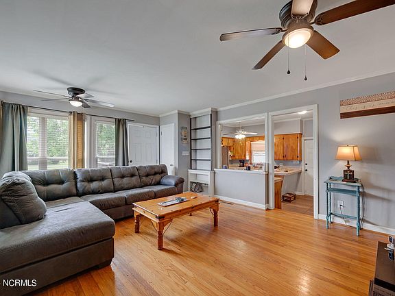 Situated in the heart of Washington, this 2 BD/1 BA 1960's bungalow could be your new home! Features include a large living room w/ hardwood floors and built-ins, spacious kitchen w/ stainless steel appliances including a gas range, tile counters, pine cabinets, lots of cabinet & counter space, and an archway leading to a flex space that could be a formal dining room or a cozy den! Two bedrooms both with hardwood floors (no carpet!) plus a full bath! The HVAC unit, roof, plumbing, sewer line, windows & water heater have been replaced in recent years! Attached carport for easy access into the home! Room for all your toys in the huge detached wired outbuilding with a workshop area & lots of storage! Conveniently located near shopping, restaurants, medical facilities & more! Bring your kayaks as there is a public boat ramp nearby! No flood insurance required! Start enjoying easy, one level living today for just $189,900!