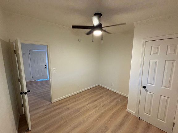 Don't miss out on this fully remodeled 2 bedroom, 1 bath duplex unit. AC cooling plus ceiling fans. Vinyl plank flooring throughout. The kitchen is equipped with stainless steel refrigerator, electric stove, and microwave. Stack washer/dryer hook-ups off kitchen. Fenced yard. Ample off-street parking.