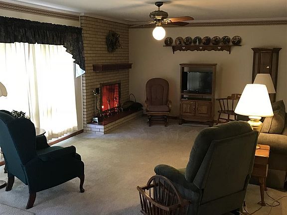 Brick home with some appliances. Built in the 60's, Located close to elementary and primary schools. Title bathroom flooring. All LED lights installed. All new door knobs installed. All new ceiling fans installed. New A/c unit. New kitchen floor installed. Big living room with fireplace. Extra closets for storage space. Brick shed in back yard with power. Kitchen is big and enough room for the dining area. Master bedroom has a walk in closet.