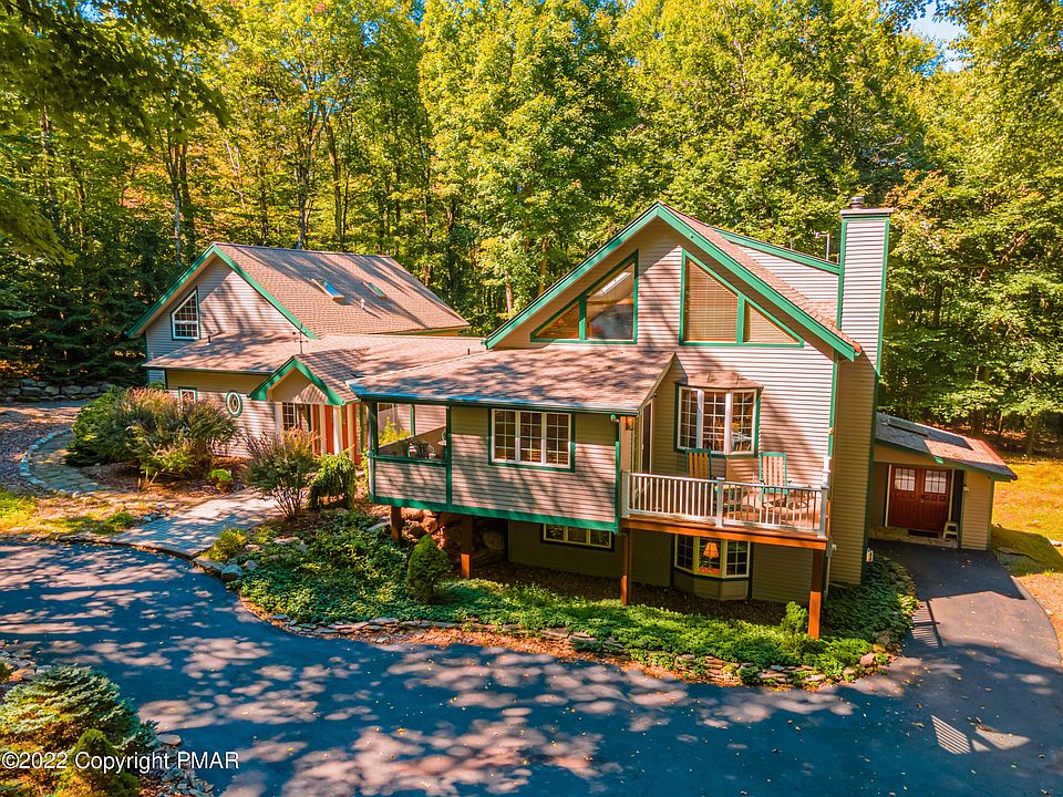 SELLER INSTALLING NEW SEPTIC! YOUR DREAM VACATION HOME AWAITS! Or an amazing primary within walking distance of Locust Lake. Peacefully tucked away in the woods of this private community. Currently being run as an AIRBNB, this EXPANSIVE home is full of natural light with its many skylights throughout. It features 2 MASTER SUITES with 7 bedrooms total. It has tons of storage space, 2 living areas, 2 lofts, an expansive deck for entertaining, a 3 season room, your very own HOT TUB room AND a well equipped GAME ROOM! You get ample parking with a half-circle paved driveway as well as an additional driveway on the side of the home. Make your appointment today to see this STUNNING move-in ready property and all it has to offer on almost a full acre of land!