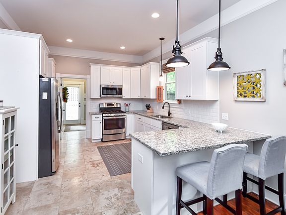 - Kitchen Features: Breakfast Bar, Stone Counters, Pantry Walk-In, Cabinets White