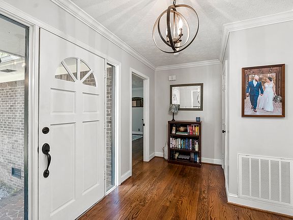 Gorgeous 3-bedroom, 2.5-bathroom brick ranch on over an acre! As you step through the bright entryway, you'll immediately be captivated by the inviting living area featuring a vaulted ceiling, a charming wood-burning fireplace, and floor-to-ceiling windows and doors that offer panoramic views of the relaxing backyard. Polished hardwood floors guide you through the well-designed layout, leading to a formal dining area conveniently located off the entry. The functional kitchen boasts ample counter space, white cabinetry, granite counter tops, and a suite of stainless steel appliances that add a modern touch.