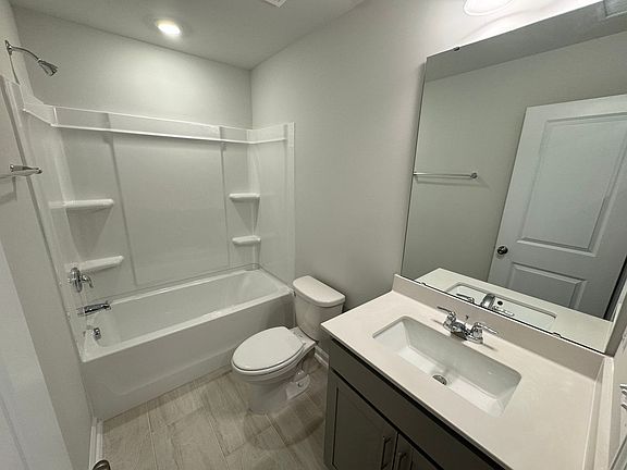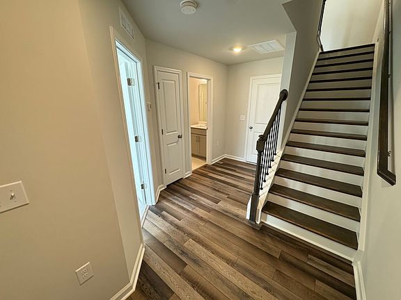Welcome to your new home a stunning three-story townhome with an oversized rear-load garage offering ample storage. The first floor features a cozy bedroom with a full bath, perfect for guests or a home office. The second floor is ideal for entertaining, with an open-concept kitchen, dining, and family room, plus a convenient half bath. Upstairs, you'll find two spacious bedrooms, each with its own full bath. The primary suite includes dual vanities and a luxurious tile shower. A laundry area is also conveniently located on this floor.
