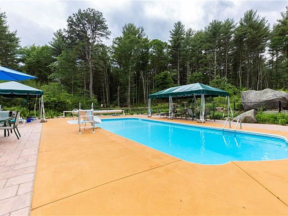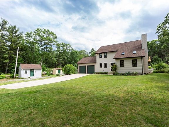 Exciting opportunity: Open Flow Contemporary Residence on 2 plus acre parcel, nestled on a gently wooded lot. Over 2200 sq ft of heated space above grade. Brazilian Cherry floors. Cathedral ceilings with skylights. Wood burning fireplace. Huge dining area. Gourmet kitchen with stone countertops. First floor office/study. Second level includes three bedrooms and two full baths. Well maintained house. Beautiful yard with heated in ground swimming pool . Gardens are ready to be harvested. Call not