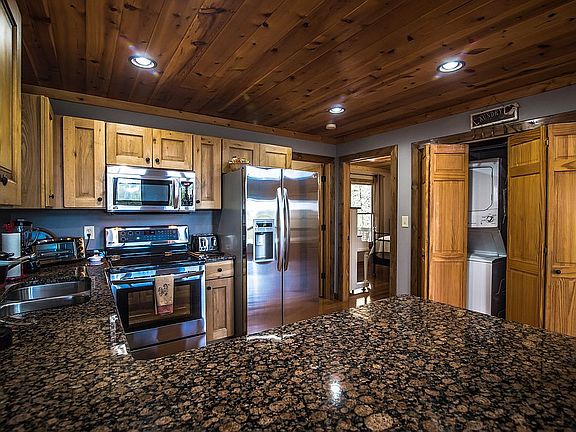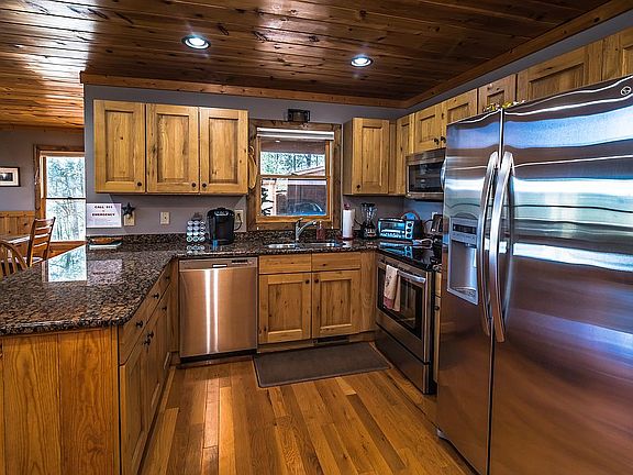 JOYFUL SPIRIT! SPLENDOR ABOUNDS in this SPACIOUS GLORIOUS RENTAL CABIN OR YOUR MOUNTAIN HOME. YEAR ROUND VIEWS from your GRAND PORCHES,2 levels of fully screened, plus rocking chair front porch. HAS IT ALL, hot tub,gameroom,theater room,library den w/sleeping nook above. Lots of parking area & 2 car enclosed carport,extra storage building. FULLY &BEAUTIFULY FURNISHED.3 bedrooms & baths, one each level,lower level bedrm is bunk room (no window ) large closets and storage space. Minutes to Blue Ridge,winerys,trout fishing and the lake. Private setting,