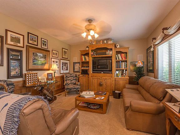 Patriot Hills golf course home! Custom builder's personal home. Too many extras to list but here goes: master suite main level, study/den main level, marble entry, granite countertops, custom made cabinets thru-out, over size kitchen with dbl convection ovens, 48" Kitchen Aid stainless refrigerator, gas 5 burner cook top, sunken great room with 24' ceiling.custom bookshelves/gas log fireplace.full windows to enjoy incredible view of #14 green/fairway/2" wood automatic blinds, office with custom built cabinets, golf cart storage, 2 car garage main plus 2 car garage basement/workshop, irrigation system for manicured yard, gas hot water heater with circulating pump for instant hot water, stone outdoor kitchen with undercounted fridge/gas grill/electric & cable hook-up, fenced back yard, this is a home u must see!