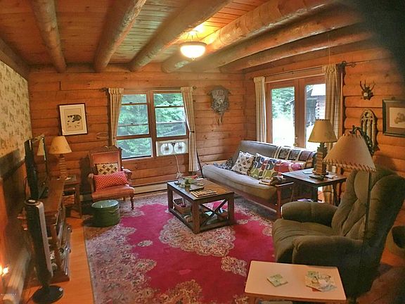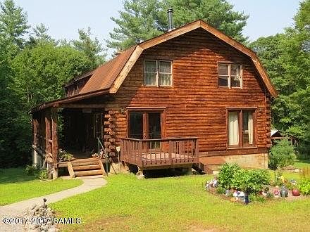 Custom log home on 5 wooded acres, private yet conveniently located 5 mi. from 1-87 and 1.5 mi.to schroon Lake. Home features large eat-in kitchen with wood stove and newer appliances. First floor bedroom, full bath, laundry and cozy living room with second woodstove. Bright and cozy second floor loft, addt'l full bath and 2 bedrooms. Large walkout basement has 2 additional rooms, storage area and workshop. Large oversized 2 car garage with second story, 60 gal air compressor and snowblower included. Wooded lot with trails for snowmobiles, ATV's or hiking. A bridge over the brook conects it all. Woodshed, garden shed and utility shed for all your toys. A beautiful property fully-loaded with trees, mountain views and Mill Brook in the back yard.