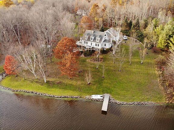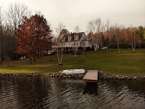 Enjoy lakefront living in a one-of-a-kind Timber-frame home on 58-acre private lake! Just minutes from Sayre, Elmira and surrounding areas, property includes 200 ft of shoreline with dock, undeveloped lots on either side. Custom built post and beam construction, nearly all rooms have view of lake. 2-story Russian fireplace ,chimney is the center of the home. Bathrooms updated in 2018 with quartz counters. Finished basement includes guest suite with bath, exercise room, and family room. Bonus room. Large decks surround front. New septic in 2016. Too many features to mention. Must see!