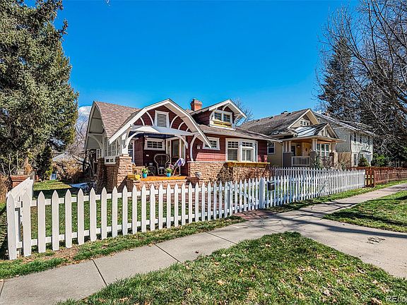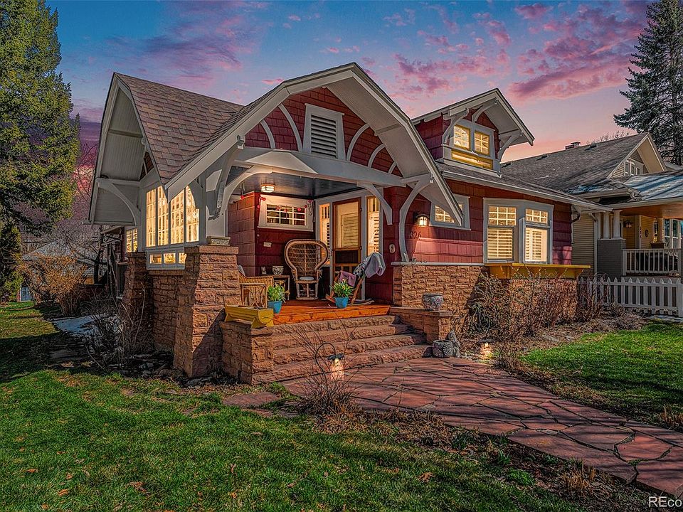 Welcome to this rare opportunity to own a home in historic Old Town Longmont. This beautiful property sits on one of the most coveted streets in Longmont- a private street lined with well-maintained homes from the early 1900's. Upon walking up to the property, you are greeted by a large covered front porch, perfect for relaxing with a morning cup of coffee or tea, or an evening with friends. As you enter the home, you’ll quickly notice a few unique features in the living room thanks to the abundance of natural light. Original old growth wooden floors, a built in seating area underneath a custom stained glass window and the original tiled gas fireplace, to name a few. An expansive dining room takes you through french doors to enter an office/library complete with a beautiful and timeless wooden coffered ceiling. Other details such as columns, curved entryways and crown molding help complete the aesthetic of this unique property. The kitchen boasts a breakfast nook, an eat-in island and a custom hood over a gas range. After passing through the kitchen you enter a cozy den with a 2nd gas fireplace. There is also a charmingly wallpapered 3/4 bathroom, as well a spacious bedroom on this level. In the back of the house a thoughtful addition holds a beautiful primary bedroom complete with wooden floors, a third gas fireplace and a 5-piece bathroom with walk-in closet. The basement has a large bedroom with 2 egress windows bringing in tons of natural light. A large laundry room (which doubles as a fantastic arts and crafts room) is also found here, along with an additional room for storage or extra living space. Enjoy the private, enclosed yard complete with a hot tub and an artistically built shed- perfect for your garden tools. The detached two-car garage has a Mother in Law studio above it- ideal for another office, short term rental income or a space to relax and reflect. Don't miss your opportunity to own one of the most unique homes Longmont has to offer!