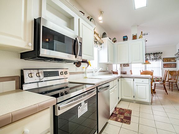 Florida room AND screened patio on the back of the house that faces the lake. Sliding glass door from the master bedroom leads to the screened in patio for an abundance of natural light and fresh air to enjoy your morning coffee or afternoon quiet time. This waterfront home has 3 bedrooms, 2 baths and a 2 car garage. All new appliances in the kitchen with a breakfast nook as well as a dining room for plenty of room for family and friends. New laminate flooring as well as new carpeting in all bedrooms. Enjoy full time Florida living or vacation time in this very active 55+ community offering a heated pool, hot tub, clubhouse to work out in or enjoy the many activities scheduled during the month. Park your RV or boat on site in the storage lot. Make your appointment today!